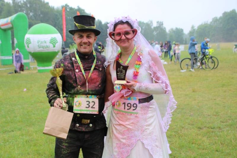 Dziś liczyły się tylko zabawa i kolory, którymi partnerzy biegu – Regionalne Centrum Krwiodawstwa i Krwiolecznictwa w Katowicach, Fundacja Iskierka, Legendia Śląskie Wesołe Miasteczko i Fundacja Park Śląski – sypali w pięciu strefach. Uczestnicy mieli do pokonania 5 kilometrów, głównymi alejami Parku Śląskiego. Trasa nie była bardzo wymagająca. – Ten bieg traktujemy troszkę inaczej. Tutaj rywalizacja schodzi na dalszy plan – przyznaje August Jakubik, który wspiera Park Śląski w organizacji tegorocznej Parkowej Korony Biegów. – Pogoda dzisiaj niestety nie dopisała, ale humory uczestników jak najbardziej.