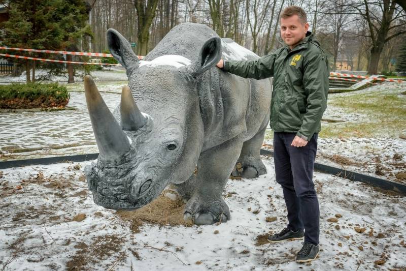 Eksponat stanął naprzeciwko nowego pawilonu dla rodziny nosorożców białych, która mieszka w śląskim zoo. Do użytku ma zostać oddany za kilka tygodni.