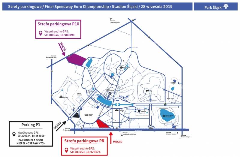 Ze względu na brak konkretnych numerów ulicy przy wjazdach do Parku Śląskiego zamieściliśmy współrzędne GPS poszczególnych wjazdów. Współrzędne GPS są niezwykle ważne, aby uniknąć zamieszania przy dojazdach do Stref Parkingowych.