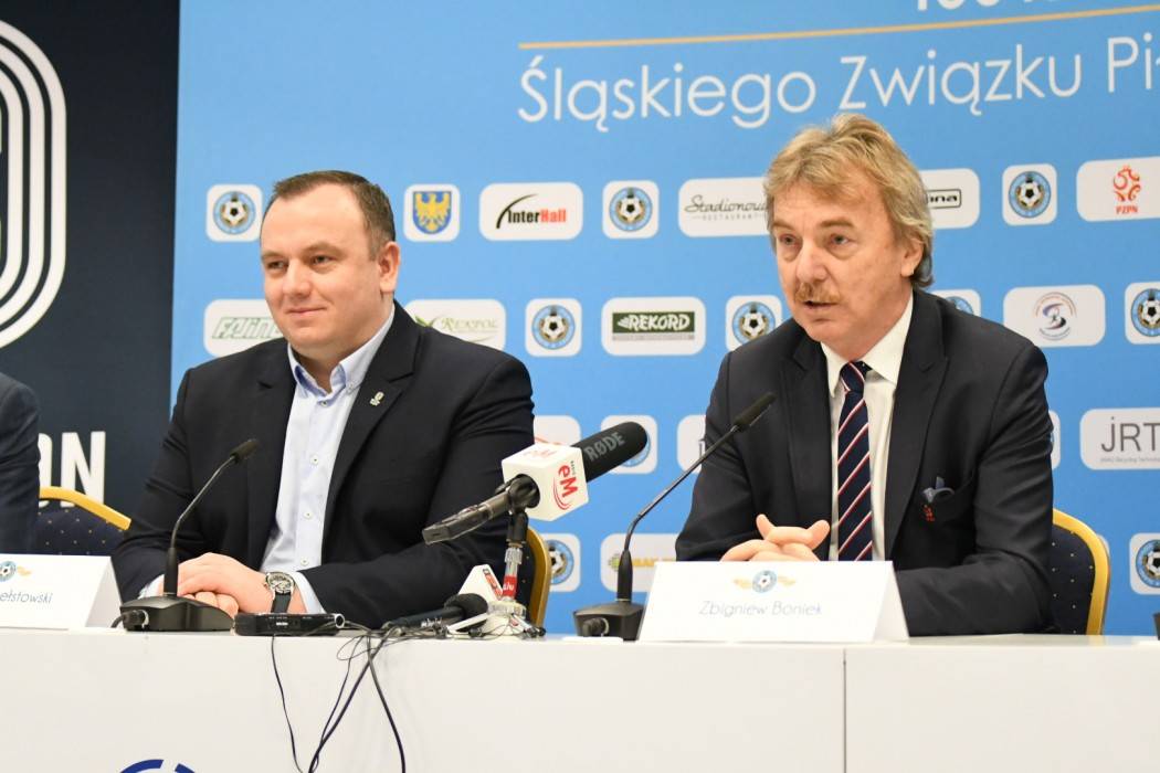 Śląski Związek Piłki Nożnej obchodzi swoje setne urodziny. Częścią zaplanowanych uroczystości była sobotnia konferencja prasowa zorganizowana na Stadionie Śląskim z udziałem m.in. prezesa Polskiego Związku Piłki Nożnej Zbigniewa Bońka oraz marszałka województwa, Jakuba Chełstowskiego