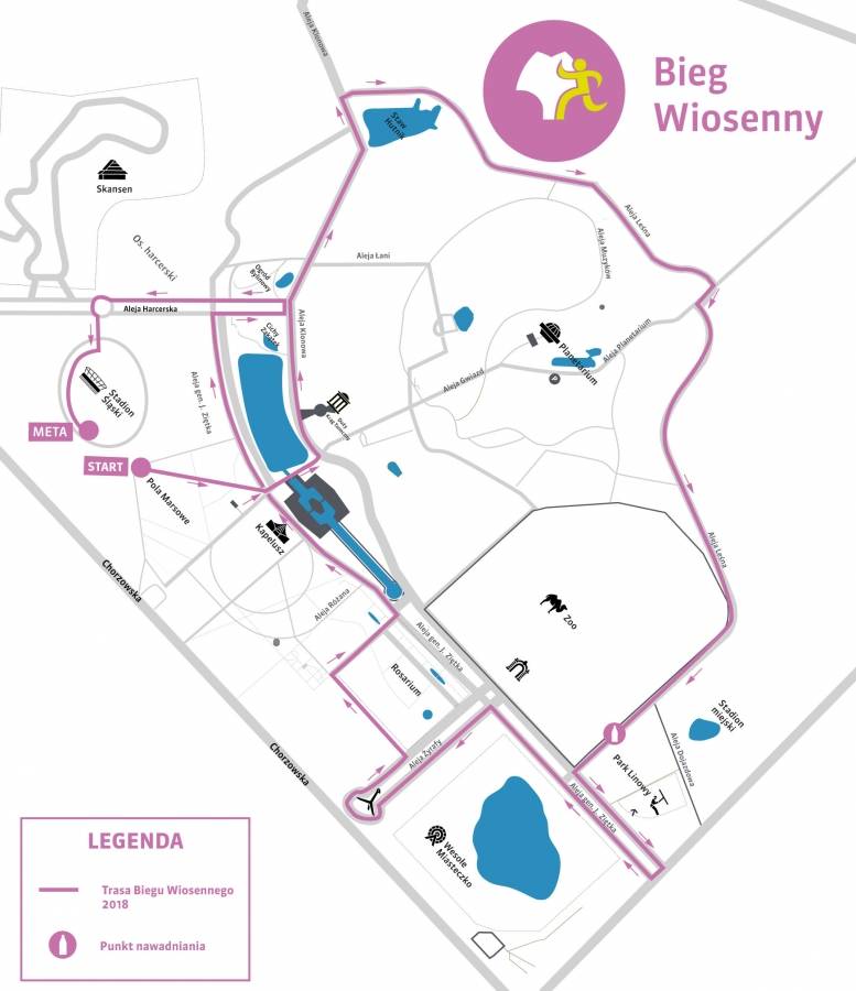 * Już teraz zachęcamy aby 11 marca skorzystać z komunikacji publicznej. Do Pól Marsowych dojeżdżają tramwaje linii 1, 6, 11, 19, 23, 33 oraz autobusy linii 6, 23, 820, 830 i 840. Ososby, które zdecydują się na przyjazd samochodem, będą proszone o dostosowanie się do poleceń służb parkingowych, zabezpieczających wydarzenie. Drodzy uczestnicy, Bieg Wiosenny to nasze wspólne święto, jednak pamiętajcie o tym, że zieleń oraz osoby spacerujące w jej otoczeniu, są w Parku Śląskim bardzo ważne– zadbajmy o nie wspólnie, zachowując komfort dojazdu do tej przestrzeni.