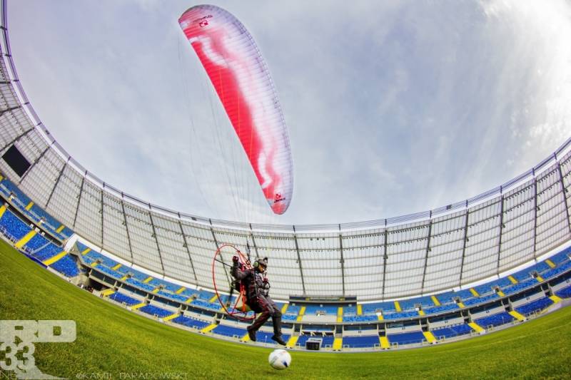 Piloci motoparalotniowi po raz kolejny udowodnili, że sporty lotnicze mogą się odbywać nie tylko na otwartych przestrzeniach. To pierwszy tego typu projekt realizowany na świecie, podczas którego Paweł „Lojak” Kozarzewski dokonał udanej próby wylotu z obiektu, a następnie powrócił do środka Stadionu Śląskiego figurą akrobacyjną.
