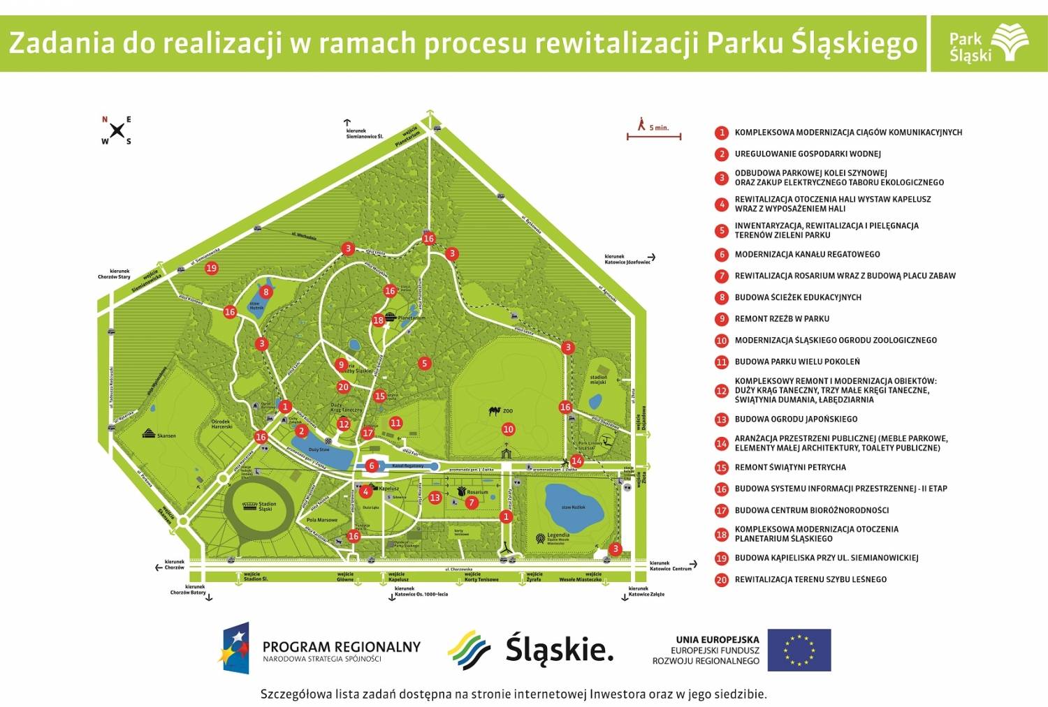 Pełna lista zadań do realizacji w ramach projektu rewitalizacji Parku Śląskiego