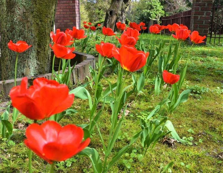 W Byliniaku na różowo i biało mieni się kalina koreańska, a na promenadzie przy Dużym Stawie pięknie urosły narcyzy i hiacynty. Już za kilka tygodni zakwitną liliowce.