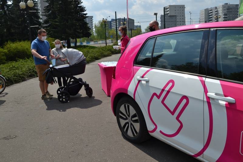 Pojazdy elektryczne Taurona z maseczkami będą dziś we Wrocławiu, Krakowie oraz w Parku śląskim.
