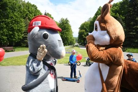W sobotę 30 maja rozdawano maseczki ochronne w Parku Śląskim. W tej akcji uczestniczyła nasza parkowa maskotka Wiewiórka Basia.