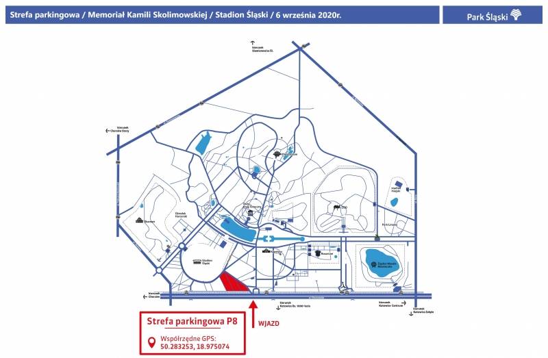 W niedzielę (6 września) na Stadionie Śląskim odbędzie się memoriał im. Kamili Skolimowskiej. Jeżeli ktoś wybiera się na to wydarzenie samochodem, to zachęcamy do skorzystania ze strefy parkingowej P8, która została zaznaczona na poniższej mapie.