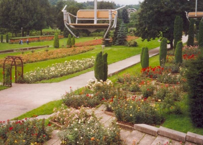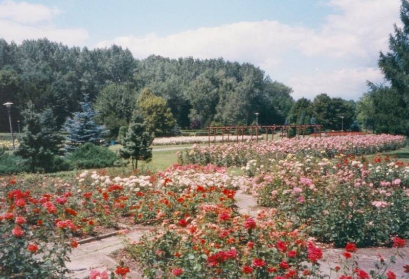Na 14 ha posadzono 350 odmian róż. Wśród nich były też najlepsze, m.in. Kordes i Poulsen. Przywożono je ciężarówkami od hodowców z Niemiec, Belgii i Holandii. Poza odmianami wielokwiatowymi, kwitnącymi przez cały sezon, w Rosarium odnajdziemy także róże pienne, róże czepne, róże parkowe, a także róże miniaturowe. Specyficzny klimat Rosarium współtworzą urokliwe oczka wodne z pięknymi klombami nenufarów.