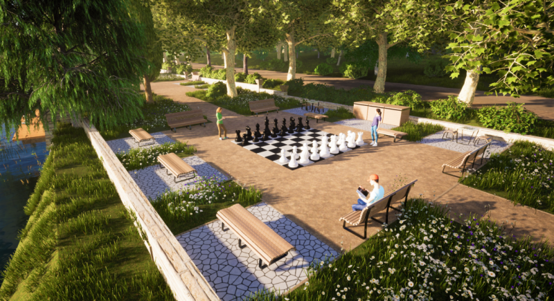 Wykonane zostaną m.in. prace związane z nowymi nasadzeniami i ochroną zieleni, zainstalowane będzie nowe oświetleniem i monitoring, powstaną nowe chodniki i ścieżki piesze, położona zostanie nawierzchnia z kostki brukowej. Poza tym wyremontowane zostaną schody, murki kamienne i balustrady oraz zamontowane zostaną nowe meble. Interesującym elementem inwestycji jest niewątpliwie szachownica wykonana z płyt kamiennych, na której staną 32 figury szachowe o wysokości dochodzącej nawet do 1m! Każdy będzie mógł je wypożyczyć, aby na miejscu rozegrać oryginalną partię szachów.