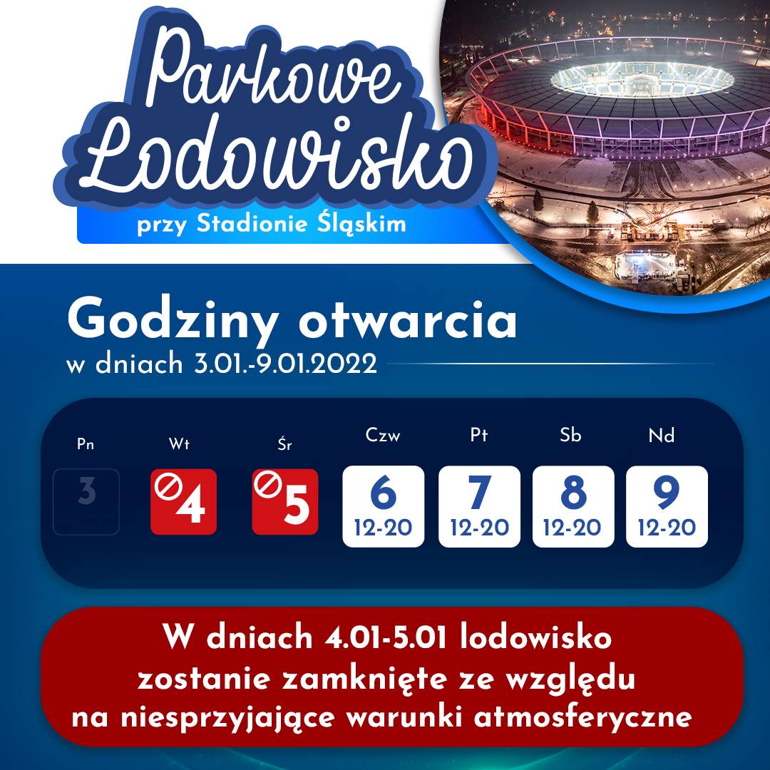 Parkowe Lodowisko przy Stadionie Śląskim zamknięte do czwartku!