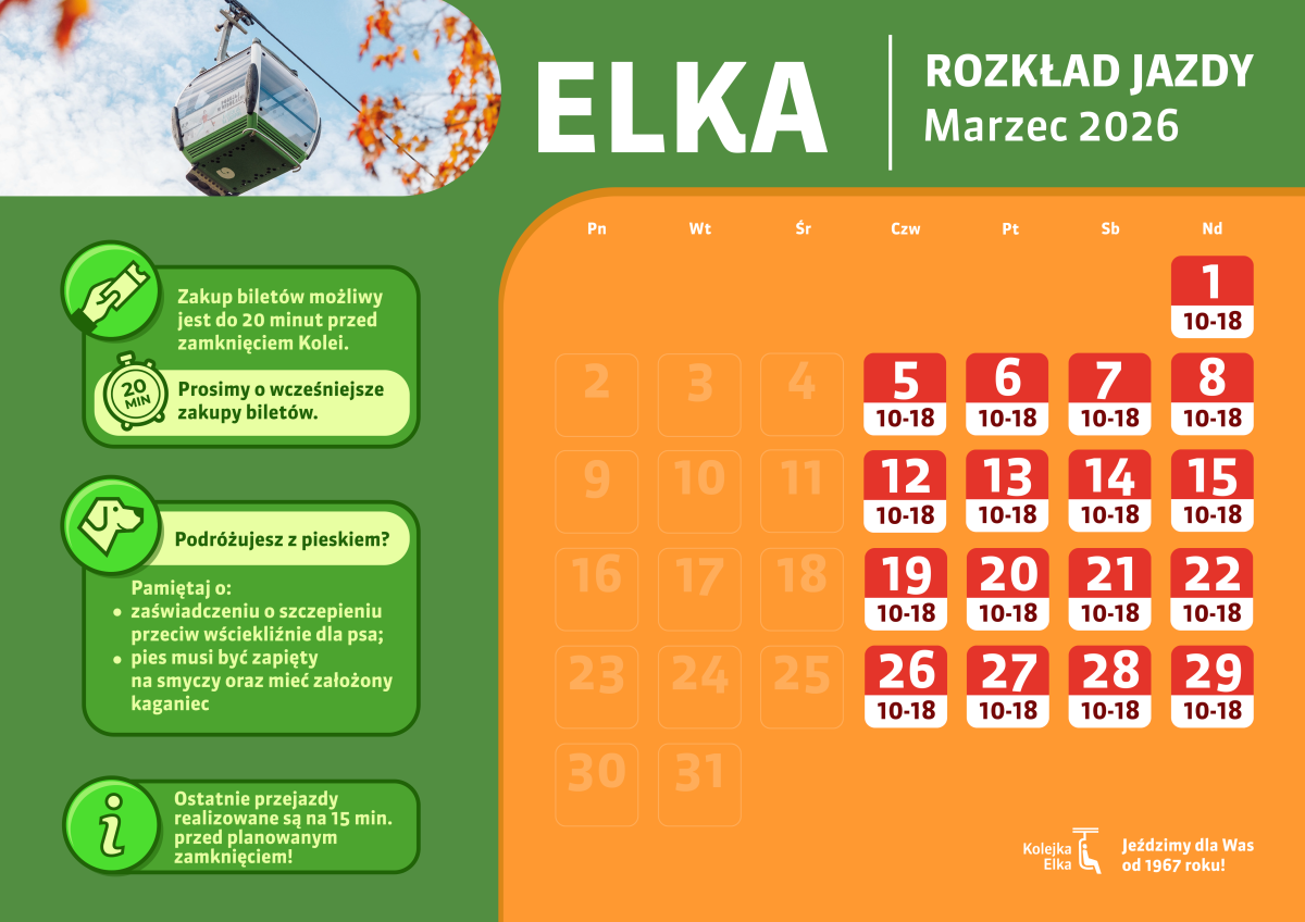Ważne ogłoszenie: Uprzejmie informujemy, że biletomaty Kolei Linowej Elka wyłączają się automatycznie 20 minut przed zamknięciem. Prosimy o wcześniejsze zakupy biletów. Dziękujemy za zrozumienie.